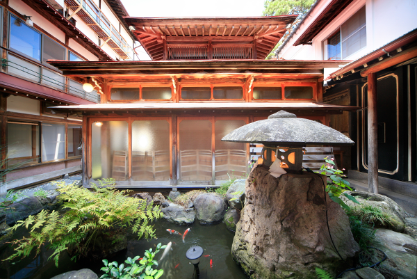 Built during the Meiji era (1868-1912), we have a traditional inner garden too. The building is filled with traditional atmosphere. Yudanaka Onsen area is surrounded by mountains and