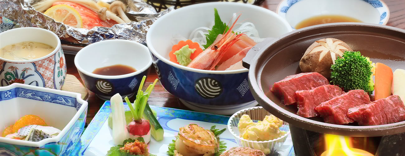 The best of locally produced Shinshu beef is used for our fine dinner cuisine. Since 1930, the Wagyu cattle have been raised with great care in the efficient breeding programs. Shinshu beef is widely known as one of Japan’s best beef.
