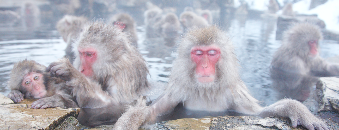 the area is famous for the wild snow monkeys, wild Japanese monkeys that are taking open-air hot spring baths. All the 14 guest rooms are traditional Japanese-style rooms with tatami